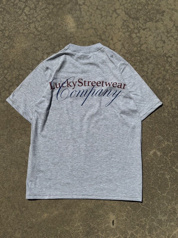 Remera gris LuckyStreetwearCompany , estampa frente y espalda.