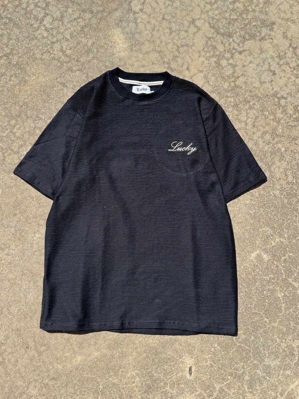 Remera negra algodón Rustico, Bordado frente Lucky